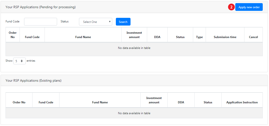 Step 8: The processed application will be shown on “Your RSP Applications (Existing plans)” column.