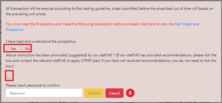 Step 6: Put a tick in the corresponding box, then input the password and click “Confirm”