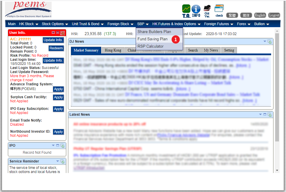 Step 1: Login POEMS > Choose “SBP“ & “Fund Saving Plan”
