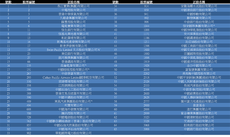 資料來源:香港交易所。該名單會不時更新。請瀏覽香港交易所最新名單。參考網頁:https://www.hkex.com.hk/chi/prod/drprod/so/classlist_so_c.htm