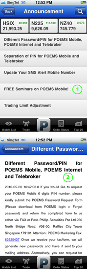 You can now capitalise on market opportunities with wireless access to real-time trading, live prices, order status, account information and stock alert. Furthermore, POEMS Mobile also facilitates a safe and secure trading environment.