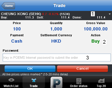 - Trade with complete trusts! When you key in your trading account number and POEMS password, POEMS Mobile ensures you are trading in a safe and secure trading environment.