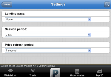 | 3.Price refresh rate | User may select auto refresh rate for price (by default is 5 secs) |