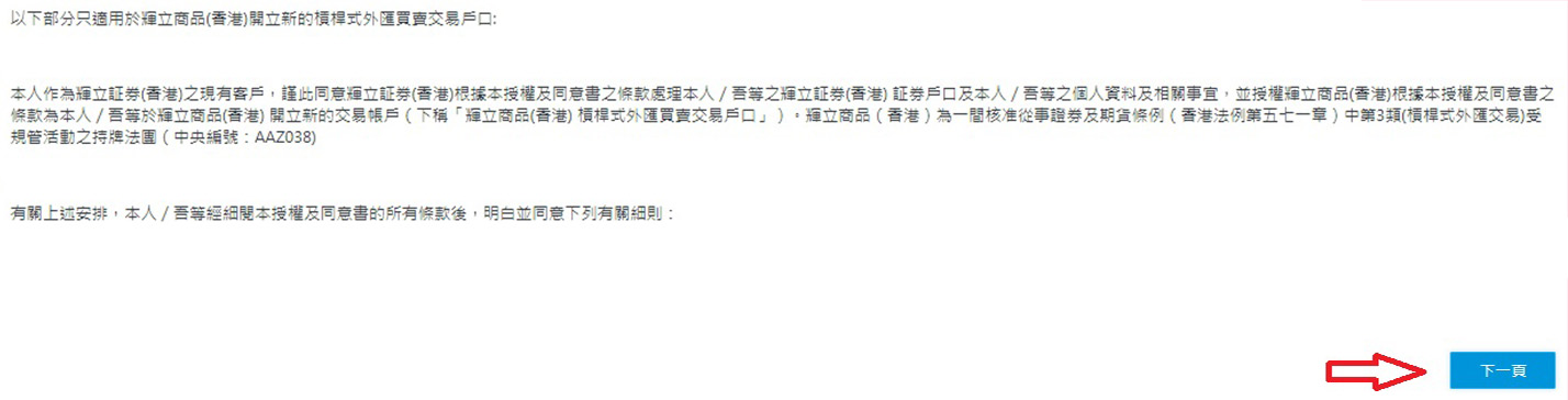 3.閱讀槓桿式外匯戶口風險聲明,確認無誤後按「下一頁」