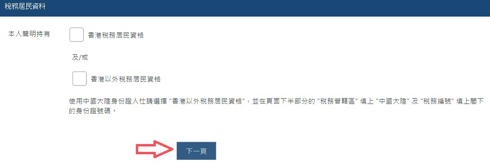 10. 請選擇閣下持有的稅務居民資格,然後按「下一頁」。