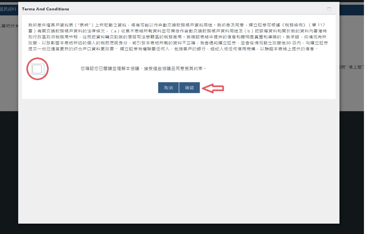 11.按方格確認閱讀並理解開戶協議,並接受相關協議及約束。