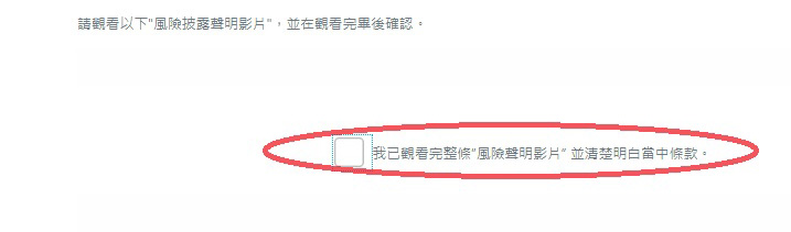 13.最後,請觀看風險披露聲明影片,觀看後按方格確認清楚明白當中條款。