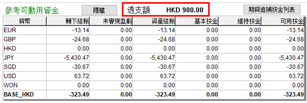 申請透支額,資金一開二,適用於香港指數期貨及期權