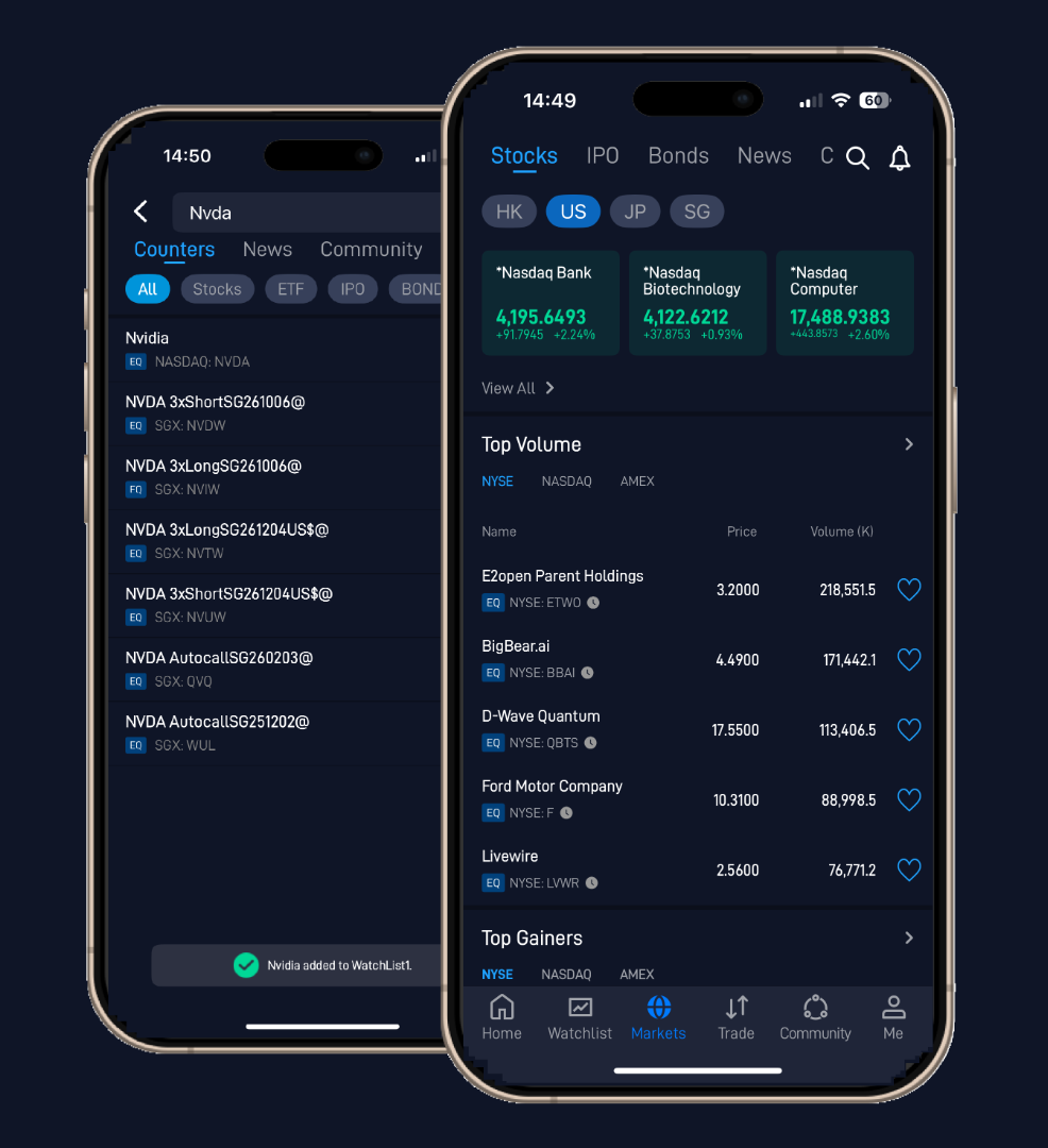 客戶可在手機應用程式「輝立香港」(POEMS 3.0) 上進行交易。
