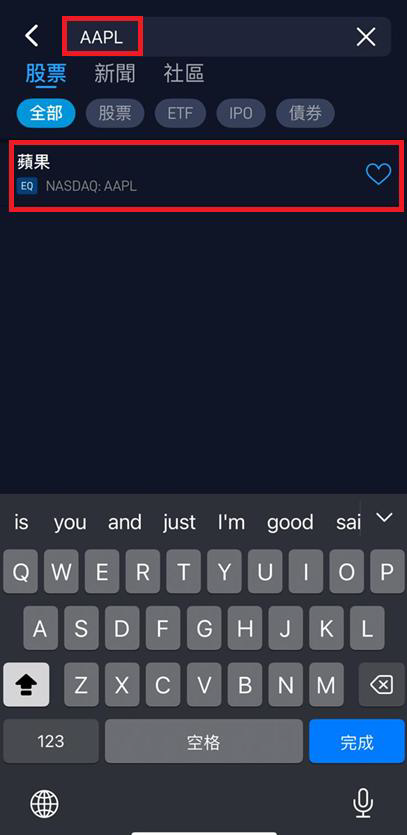 5. 搜尋您想要交易其期權的股票(例如 AAPL)。