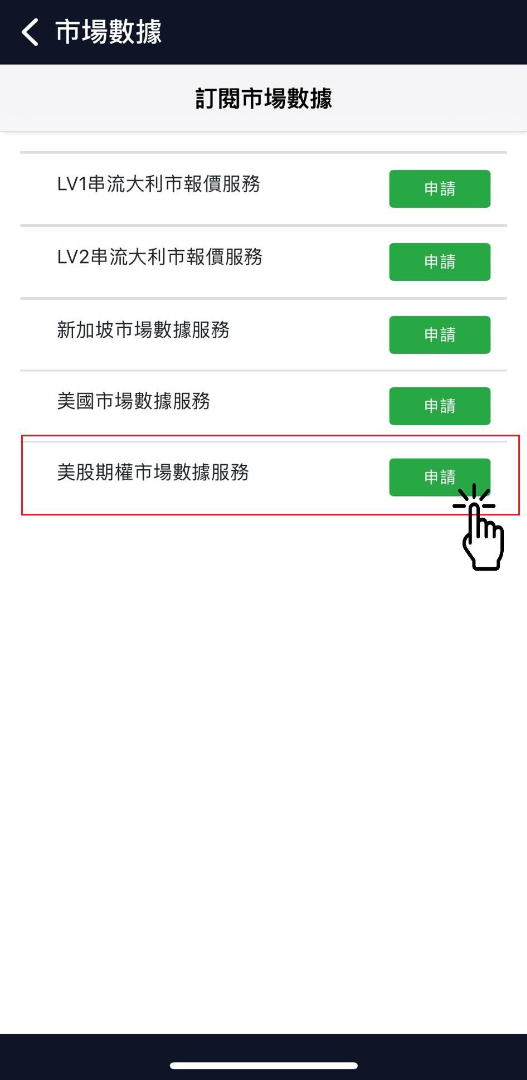 2. 點擊上方 期權 → 再選 US。